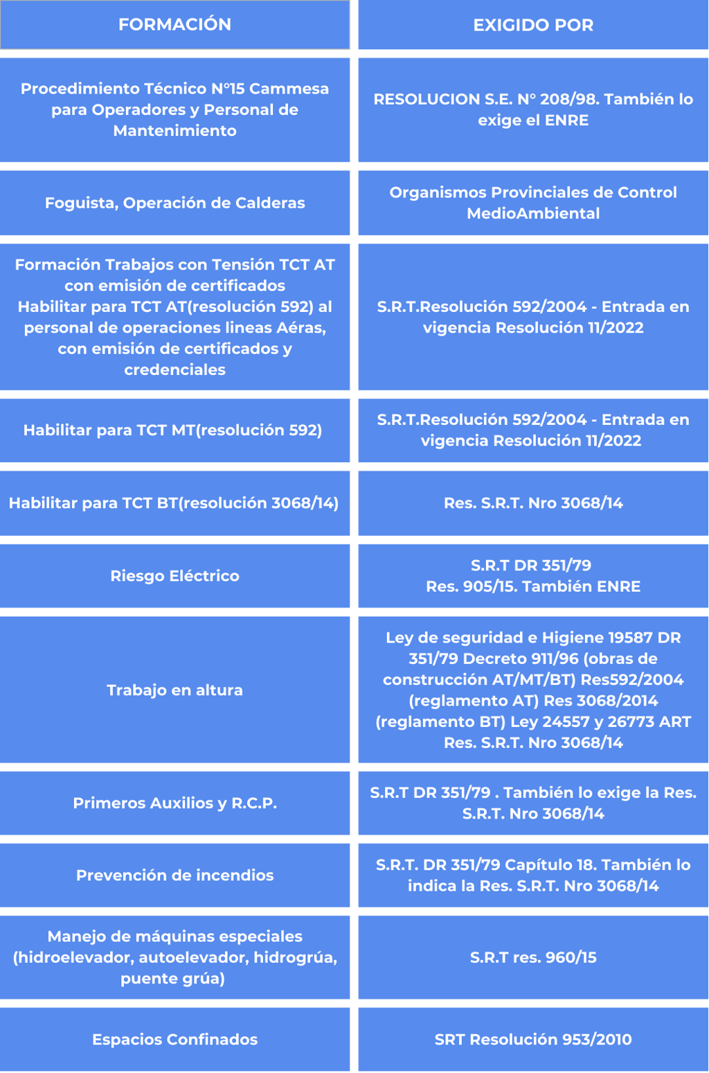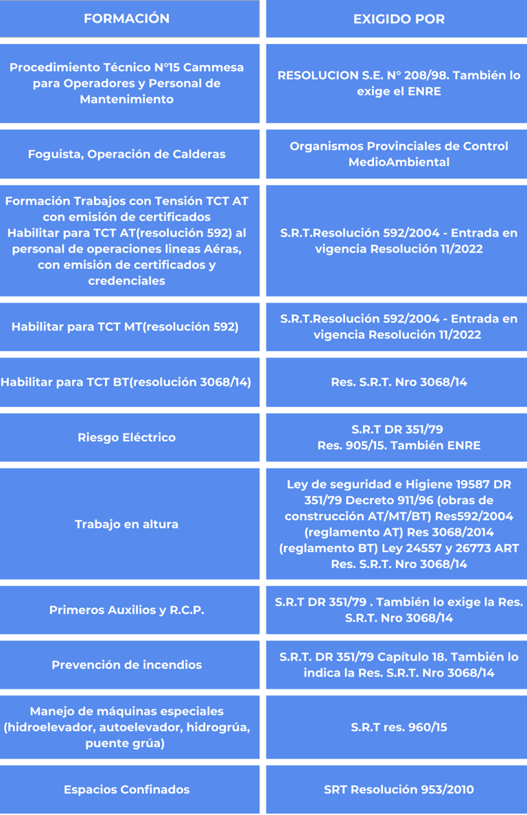 CAPACITACIONES EXIGIDAS A EMPRESAS DEL SECTOR ENERGÉTICO